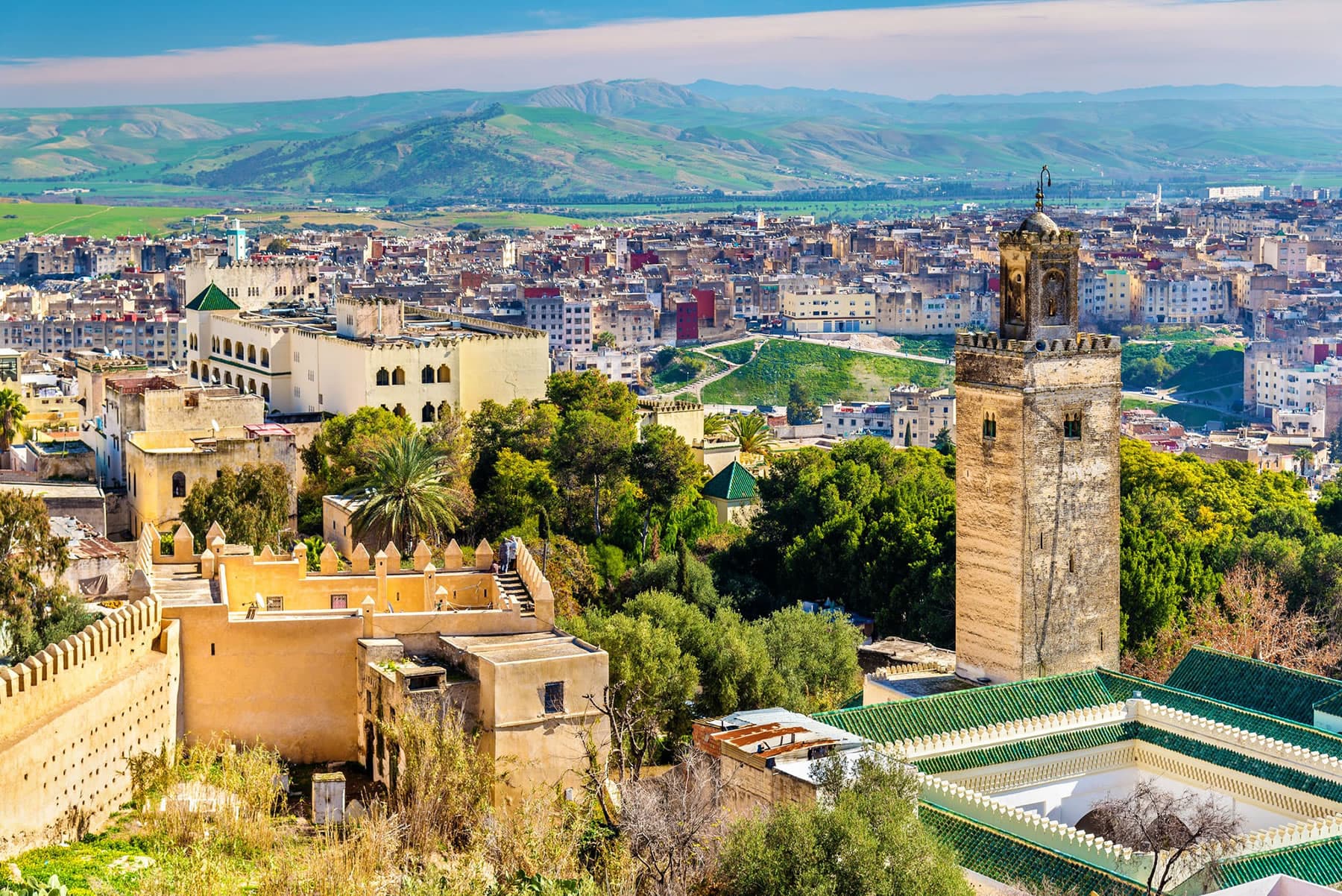 Visita de la primera de las ciudades imperiales, Fez, capital intelectual y religiosa de Marruecos. Comenzaremos con un recorrido panorámico, el palacio real y sus 7 puertas o Dar Al-Makhzen de camino al fascinante mundo de la medina de Fez El Bali, la más antigua y extensa de Marruecos, Patrimonio de la Humanidad, con 785 mezquitas y más de 2.000 plazas, calles y callejuelas que suponen un laberintico regreso en el tiempo. Desde Bab Boujloud hasta la plaza Es-Seffarine realizaremos un viaje a través de los siglos comenzando en el siglo IX hasta el XIX. Conoceremos las diferentes construcciones, los gremios de artesanos, barrio de curtidores, una Medersa y los alfareros. Almuerzo en un restaurante típico y tarde libre. Alojamiento.